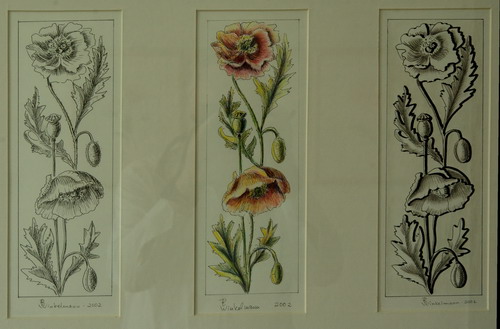 Entwurf Mohntapete / sketches for wallpapers with poppiesTusche, Aquarell / Indian Ink, aquarell, 2002
