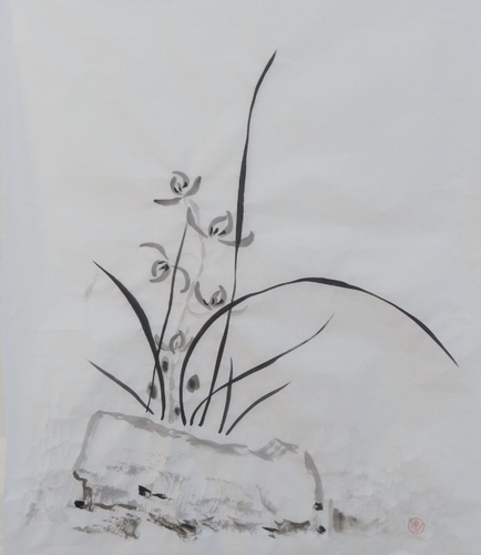 Orchidee mit Stein / orchid with stoneTuschzeichnung / ink drawing 68 x 60 cm, 2013