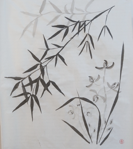 Orchidee mit Bambus / orchid with bambooTuschzeichnung / ink drawing 68 x 60 cm, 2013