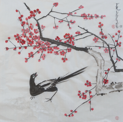 Kirschblüten und Elster / Cherry blossoms and magpieTuschzeichnung / ink drawing 70 x 68 cm, 2013