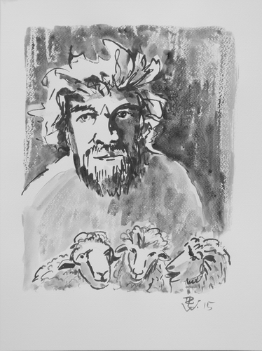 Der wilde Enkidu / The wild Enkidu Tuschezeichnung mit Rohrfeder und Pinsel/ Drawing with ink and reed pen and brush 40 x 30 cm, 2016