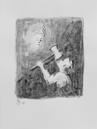 Gilgamesch träumt von einer Axt / Gilgamesh has a dream of an ax Tuschezeichnung mit Rohrfeder und Pinsel/ Drawing with ink and reed pen and brush 40 x 30 cm, 2015
