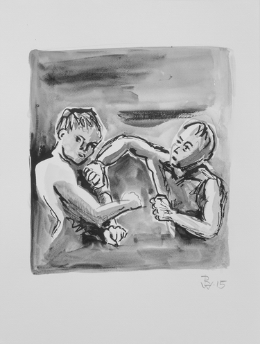 Enkidu und Gilgamesch kämpfen / fight between Enkidu and Gilgamesh Tuschezeichnung mit Rohrfeder und Pinsel / Drawing with ink and reed pen and brush 40 x 30 cm, 2015