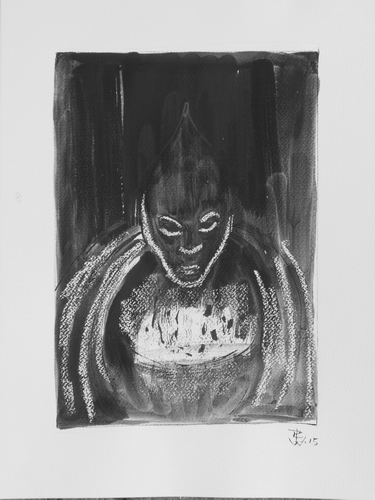 Ninsun bringt ein Rauchopfer dar / Ninsun offereth an incense Tuschezeichnung mit Rohrfeder und Pinsel / Drawing with ink and reed pen and brush 40 x 30 cm, 2015