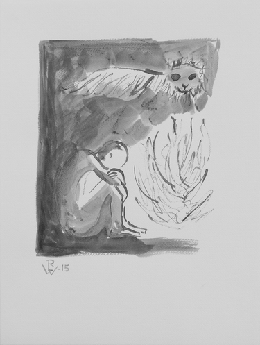 Gilgamesch träumt vom Löwenadler / Gilgamesch dreams a lion-eagle Tuschezeichnung mit Rohrfeder und Pinsel / Drawing with ink and reed pen and brush 40 x 30 cm, 2015