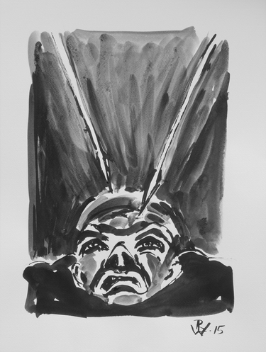 Gilgamesch und Enkidu töten Humbaba / Gilgamesh and Enkidu kill Humbaba Tuschezeichnung mit Rohrfeder und Pinsel / Drawing with ink and reed pen and brush 40 x 30 cm, 2015