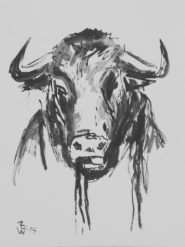 Tod des Himmelsstiers / Death of the bull of heaven Tuschezeichnung mit Rohrfeder und Pinsel / Drawing with ink and reed pen and brush 40 x 30 cm, 2015