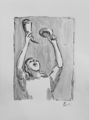 Freudenfest mit Opfergaben/ Festival with offerings Tuschezeichnung mit Rohrfeder und Pinsel / Drawing with ink and reed pen and brush 40 x 30 cm, 2015