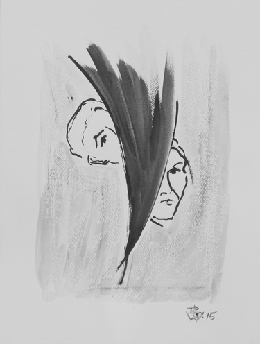 Götter beschließen Enkidus Tod / Gods decide Enkidu's death Tuschezeichnung mit Rohrfeder und Pinsel / Drawing with ink and reed pen and brush 40 x 30 cm, 2015