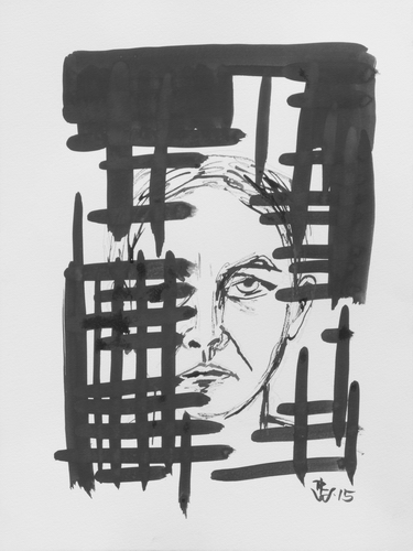 Enkidu stirbt / Enkidu dies Tuschezeichnung mit Rohrfeder und Pinsel / Drawing with ink and reed pen and brush 40 x 30 cm, 2015