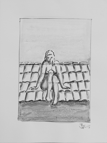 Siduri auf dem Dach / Siduri on the roof Tuschezeichnung mit Rohrfeder und Pinsel / Drawing with ink and reed pen and brush 40 x 30 cm, 2015