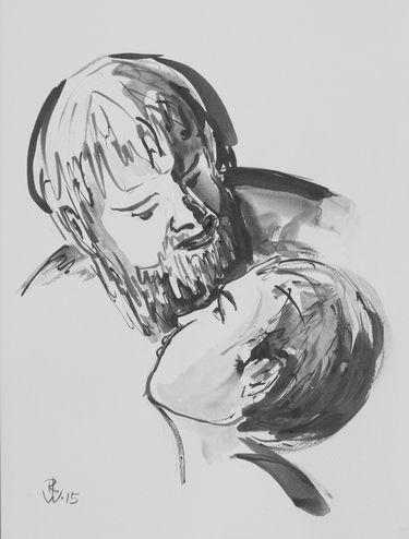 Uta-napischti (Noah) belehrt Gilgamesch / Uta-napishti (Noah) teaches Gilgamesh Tuschezeichnung mit Rohrfeder und Pinsel / Drawing with ink and reed pen and brush 40 x 30 cm, 2015