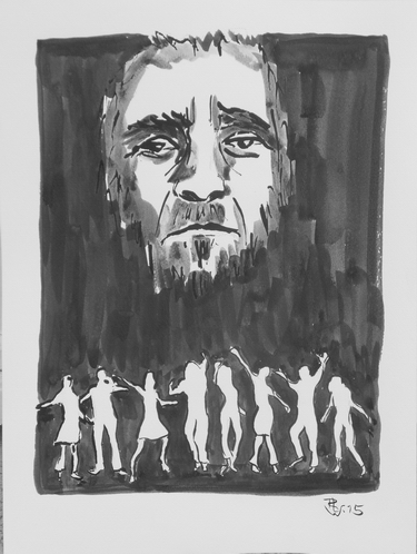 Enlil, der oberste Gott, beschließt, die Menschheit zu vernichten / Enlil, the greatest God decides to destroy manhood Tuschezeichnung mit Rohrfeder und Pinsel / Drawing with ink and reed pen and brush 40 x 30 cm, 2015