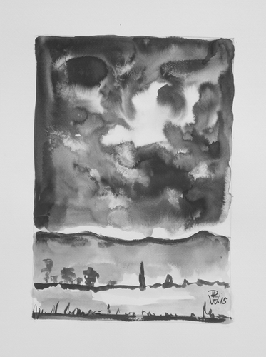 Die schwarze Wolke kommt / The black cloud is arriving Tuschezeichnung mit Rohrfeder und Pinsel / Drawing with ink and reed pen and brush 40 x 30 cm, 2015