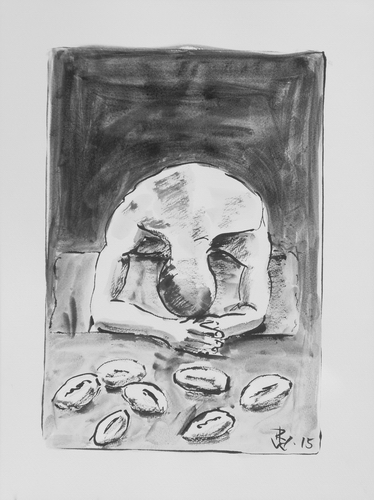 Der schlafende Gilgamesch / Sleeping Gilgamesch Tuschezeichnung mit Rohrfeder und Pinsel / Drawing with ink and reed pen and brush 40 x 30 cm, 2015