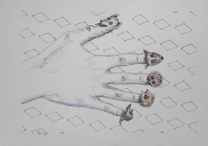 Fingerviecher / fingercattle Zeichnung mit Finelinder und Farbstift / Drawing with fineliner and colourpen 21 x 29,5 cm, 2016