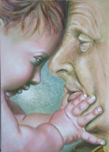 Opa und Enkel / grandfather & grandchildAcryl, Öl auf Leinwand / acrylic & oil on canvas, 70 x 50 cm, 2004