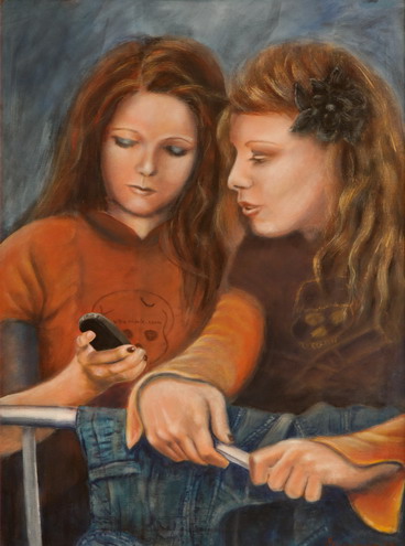 Handymädchen / girls with mobilephoneAcryl auf Leinwand / acrylic on canvas, 95 x 70 cm, 2004