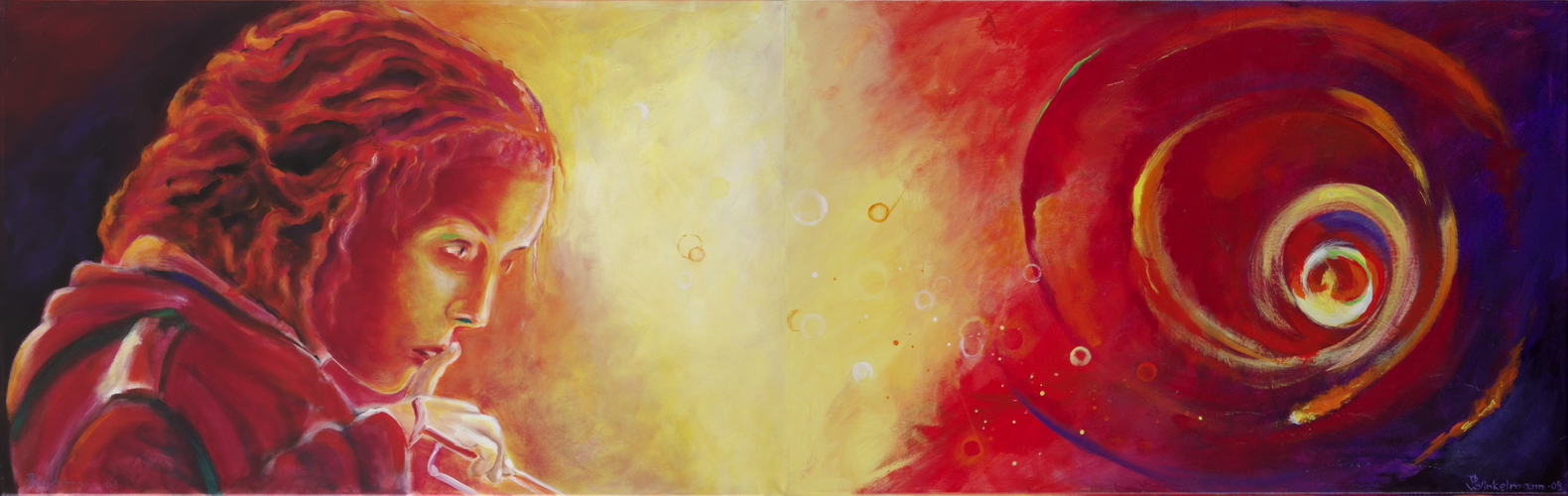 Horchende Violinistin (Gehör) / listening violinist (hearing)Acryl auf Leinwand / acrylic on canvas, 60 x 95 cm, 2008