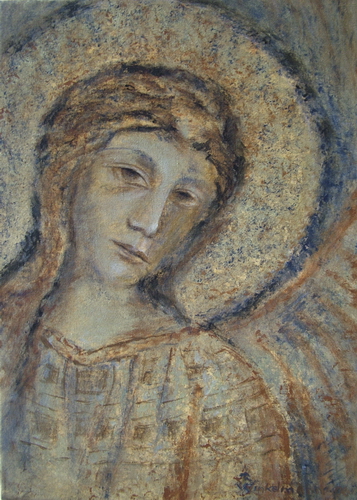 Engel nach Cimabue / angel according to CimabueAcryl auf Leinwand / acrylic on canvas, 45 x 30 cm, 2005 In Privatbesitz / privately owned