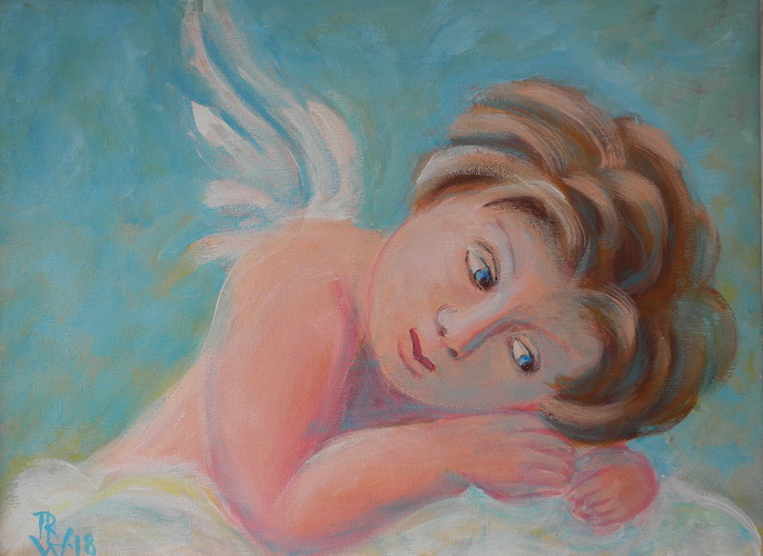 Putto auf WolkeAcryl auf Leinwand / acrylic on canvas 30 x 40 cm, 2018
