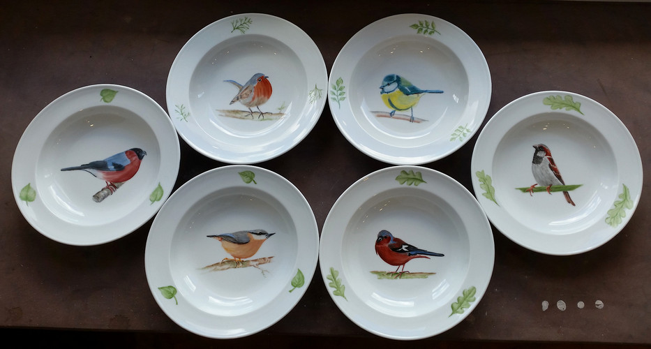 Vögel / birdsMalerei auf Fürstenberger Porzellan / painting on Fürstenberger Porzellan, d = 24 cm, 2020