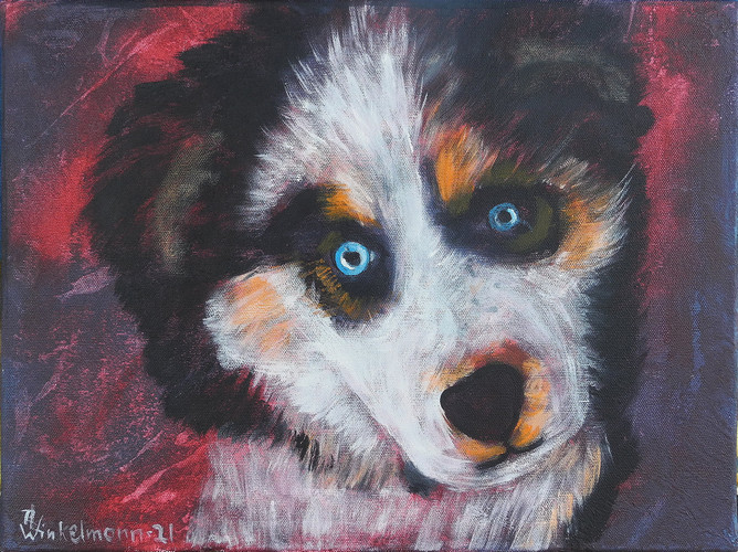 Hund mit blauen AugenAcryl auf Leinwand / acrylic on canvas, 30 x 40 cm, 2021