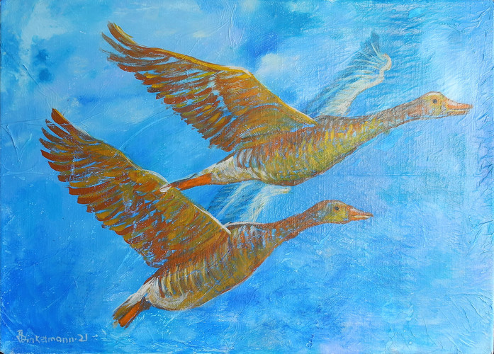 Zwei GänseAcryl auf Leinwand / acrylic on canvas, 50 x 70 cm, 2021