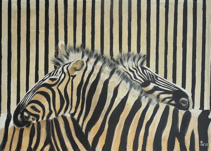Zebras schmusenAcryl auf Leinwand / acrylic on canvas, 50 x 70 cm, 2021