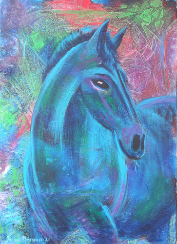 Blaues PferdAcryl auf Leinwand / acrylic on canvas, 70 x 50 cm, 2021