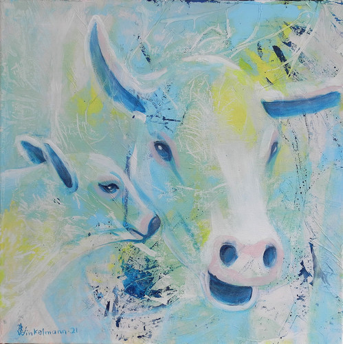 Kuh mit KalbAcryl auf Leinwand / acrylic on canvas, 50 x 50 cm, 2021