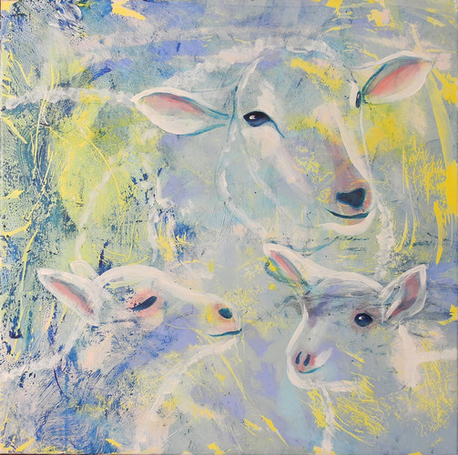 Schaf mit LämmernAcryl auf Leinwand / acrylic on canvas, 60 x 60 cm, 2021