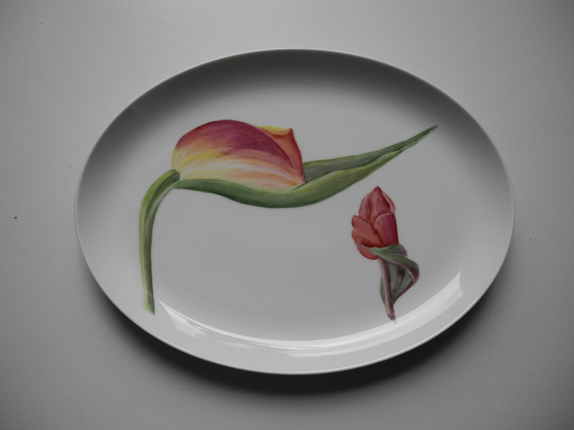 Schlafen und wachen - Zwei Tulpen auf Fürstenberger Porzellan, 22,5 x 30 cm,2017