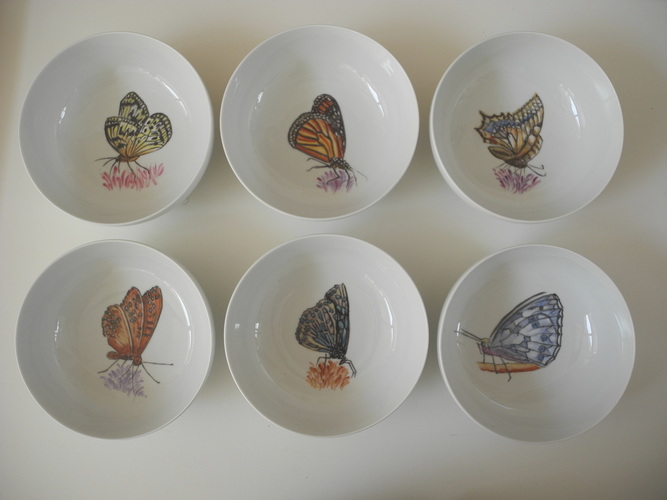 Schmetterlinge auf Fürstenberger Porzellan je d = 15,5 cm,2017