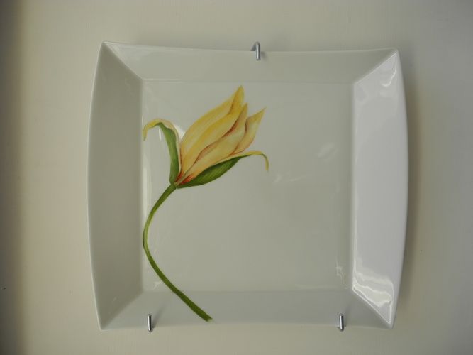 Tulpe - aufwärts strebend auf Fürstenberger Porzellan Quaterno ca 30 x 30 cm,2017 In Privatbesitz