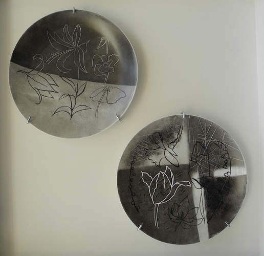 Blumen schwarz-weiß auf Fürstenberger Porzellan d = 19 cm,2017