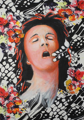 Ekstase Acryl auf Blumenstoff auf Leinwand, 100 x 70 cm, 2018