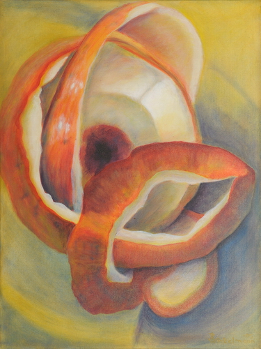 Geschälter Apfel / peeled appleAcryl auf Leinwand / acrylic on canvas, 80 x 60 cm, 2005 In Privatbesitz / privately owned