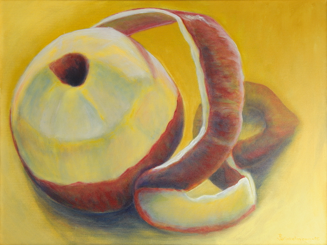 Geschälter Apfel / peeled appleAcryl auf Leinwand / acrylic on canvas, 60 x 80 cm, 2005 In Privatbesitz / privately owned