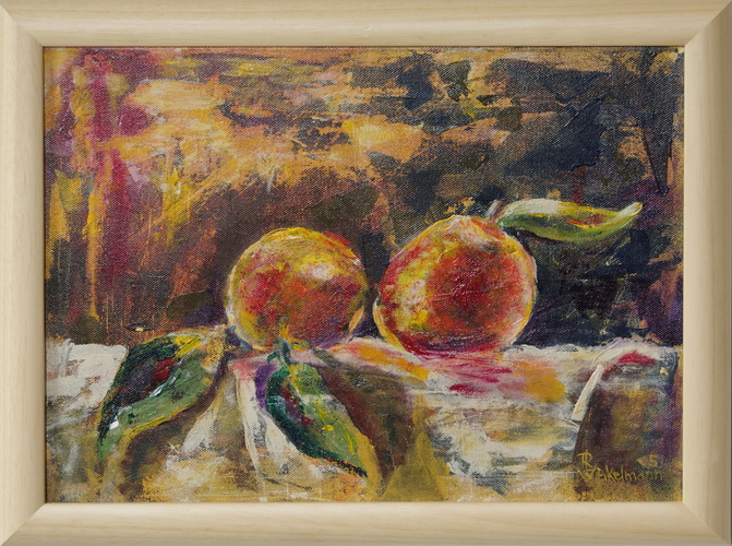 Apfelsinen mit Blättern / oranges with leafsAcryl auf Leinwand / acrylic on canvas, 30 x 40 cm, 2005