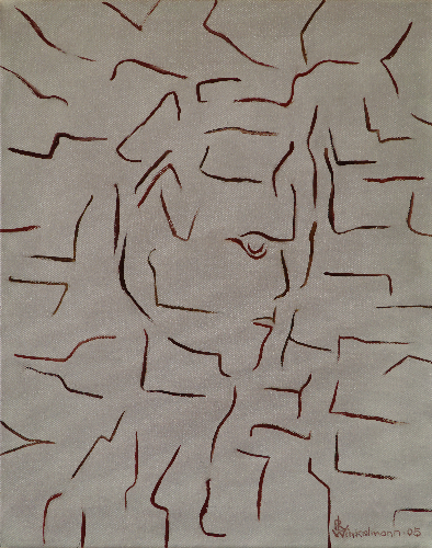 Kopf in der Rinde, linear / head in a barcSchloss NeuhausAcryl auf Leinwand / acrylic on canvas, 50 x 40 cm, 2005