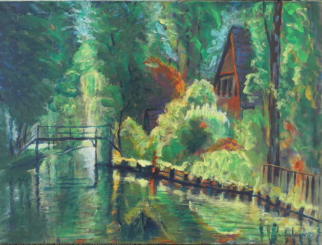 Spreewald mit BrückeAcryl auf Leinwand / acrylic on canvas, 60 x 80 cm, 2020