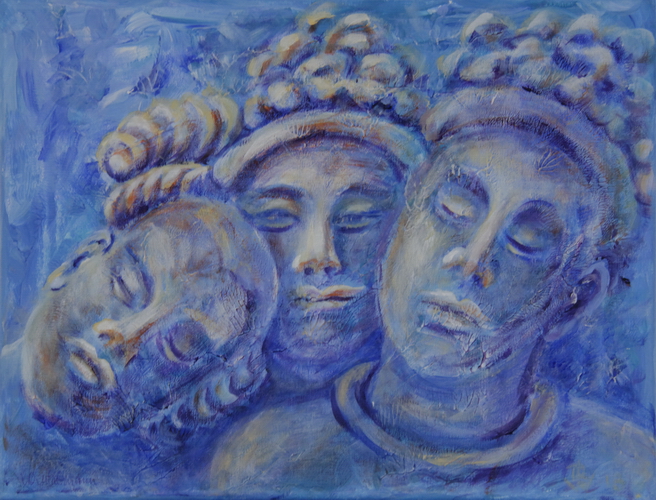 Träumende Mädchen nach einem Relief in Borobodur (1) / Dreaming Girls in Borobodur Acryl auf Leinwand / acrylic on canvas, 30 x 40 cm, 2013 In Privatbesitz / privately owned
