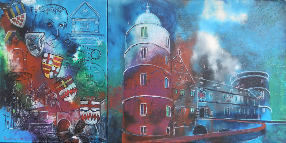 Wewelsburg durch die ZeitenAcryl auf Leinwand / acrylic on canvas, 80 x 160 cm, 2020