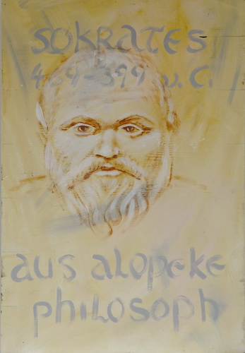 Große Geister der Weltgeschichte / Great PersonsSokratesAcryl auf Holz / acrylic on panel, 72 x 50 cm, 2011