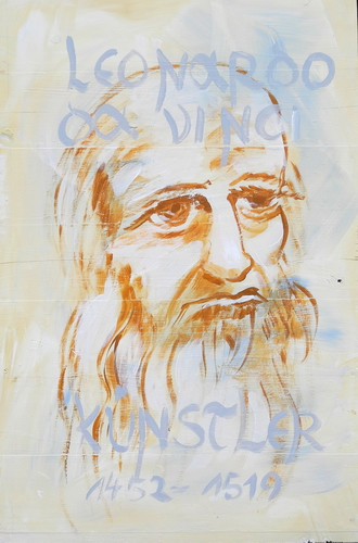 Große Geister der Weltgeschichte / Great PersonsLeonardo da VinciAcryl auf Holz / acrylic on panel, 72 x 50 cm, 2017