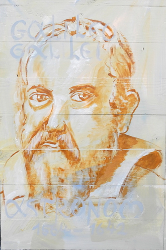 Große Geister der Weltgeschichte / Great PersonsGalileo GalileiAcryl auf Holz / acrylic on panel, 72 x 50 cm, 2017