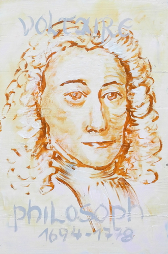 Große Geister / Great PersonsVoltaireAcryl auf Holz / acrylic on panel, 72 x 50 cm, 2017