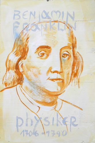 Große Geister / Great PersonsBenjamin FranklinAcryl auf Holz / acrylic on panel, 72 x 50 cm, 2017