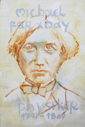 Große Geister / Great PersonsMichael FaradayAcryl auf Holz / acrylic on panel, 72 x 50 cm, 2017